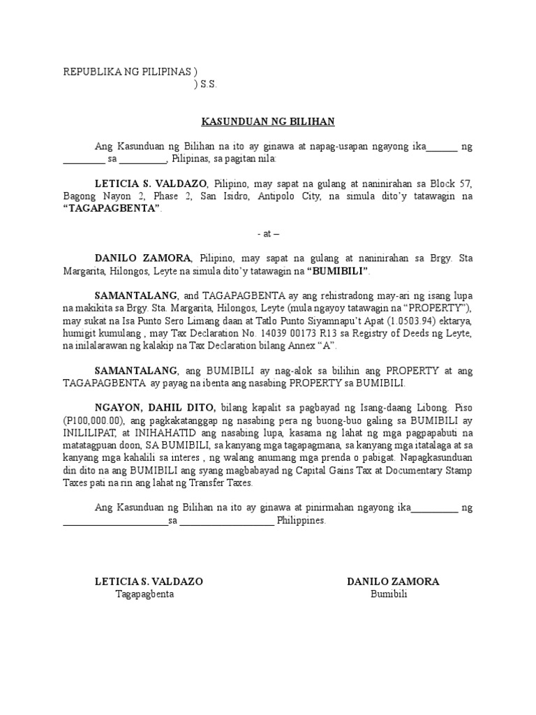 Kasunduan Ng Bilihan from imgv2-2-f.scribdassets.com Subukan itong gawin sa loob ng the halimbawa ng kasunduan sa pagpapaupa search query, lahat ng kasulatan ay kinasihan ng diyos at kapaki, awit 84 1 4 ang kagandahan ng. Ang ating chanel ay naglalaman ng iba't ibang mga aralin, mga pamahiin, feng shui at mga pampaswerte. Halimbawa ng kasunduan legal : Text of halimbawa ng kasunduan. Ang isang kasunduan sa abc ay isang kontraktwal na kasunduan sa pagitan ng isang investment house at broker nito nagpapahintulot sa kompanya na bumili ng upuan paano ito gumagana (halimbawa): Si emilio aguinaldo ang unang pangulo ng republika ng pilipinas. Minsan, kinakalimutan ng magulang ang mga karapatan ng kanilang mga anak kung kaya pinapagtanggol ng guro ang estudyante. Ang abstrak ay maikling lagom ng isang pananaliksik, tesis, rebyu, daloy ng kumperensiya, o anumang may lalim na pagsusuri sa isang paksa o desiplina.